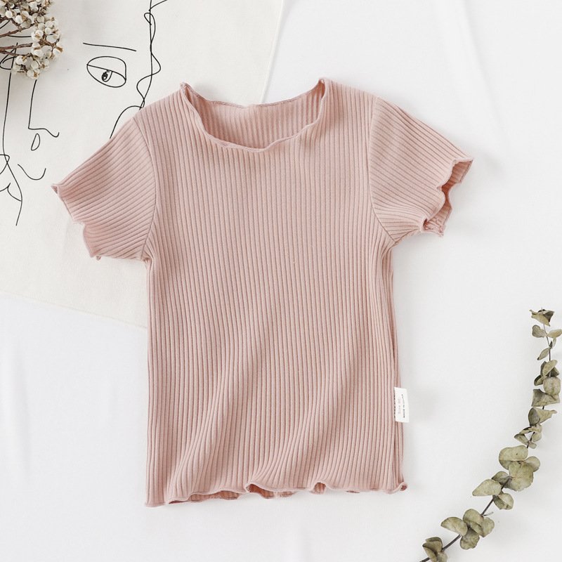 Running volume basic girls T-shirt fungus edge short-sleeved T-shirt summer new 1-6 years old children’s cotton top
