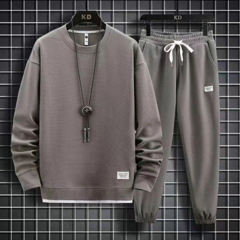 Autumn suit men’s new fattening plus size fake two-piece sweatshirt and sweatpants athleisure two-piece set