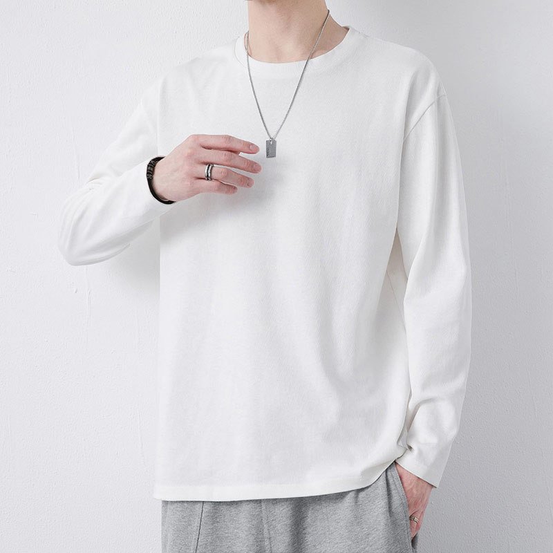 Cotton loose crewneck long-sleeved T-shirt for men Men and women with the same solid color simple and versatile top can be worn over the base layer