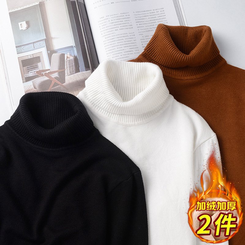 Turtleneck sweater men’s fleece autumn and winter new style with a thick knit sweater long collar warm lapel wool clothes