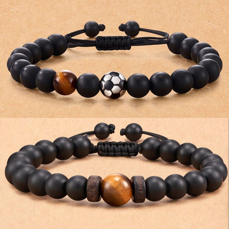 Amazon Hot Selling Obsidian Frosted Woven Bracelet Men’s Football Fashion Tiger’s Eye Volcanic Stone Beaded Bracelet