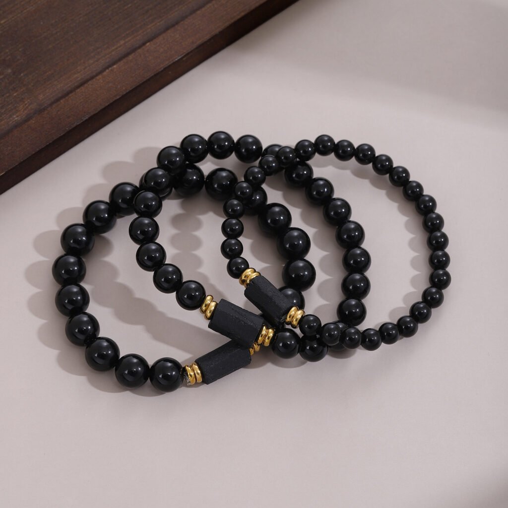 Cross-border Amazon New 6 8 10MM Tourmaline Natural Obsidian Beaded Bracelet Men’s and Women’s Jewelry Wholesale