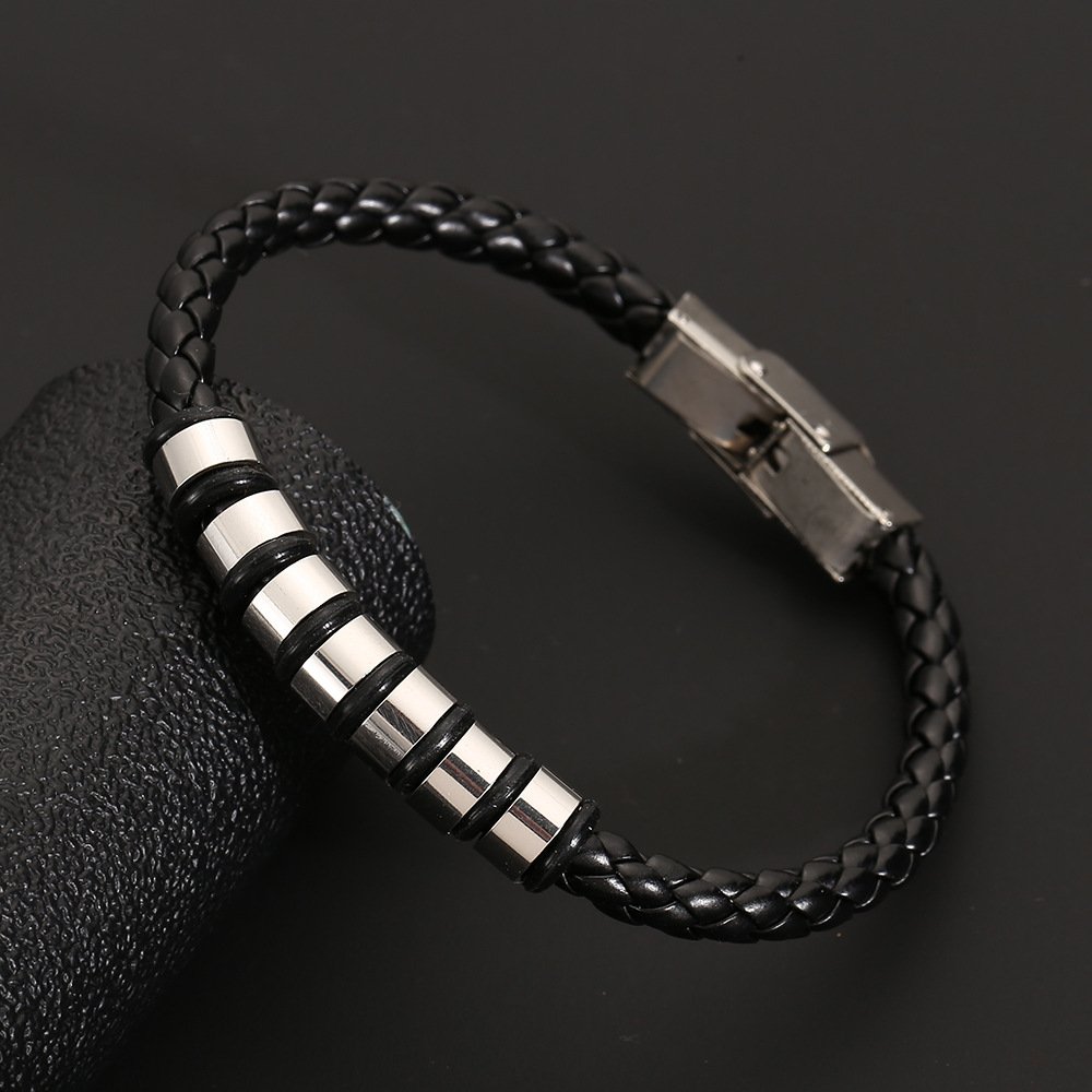 European and American fashion leather woven stainless steel titanium steel bracelet vintage men’s bracelet foreign trade cross-border wholesale dropship