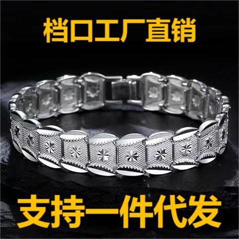 Genuine copper silver plated simple Korean version Xishan snow white star brand wide version men’s bracelet e-commerce live broadcast factory wholesale