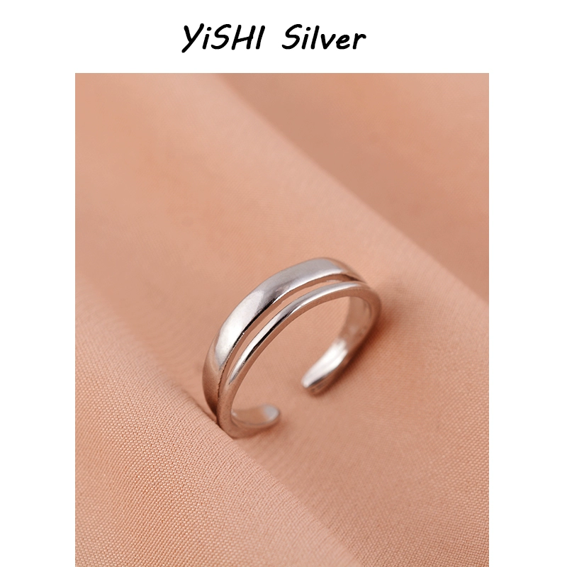 925 sterling silver ring double-layer plain ring female simple ins light luxury niche cold style open ring personality element circle