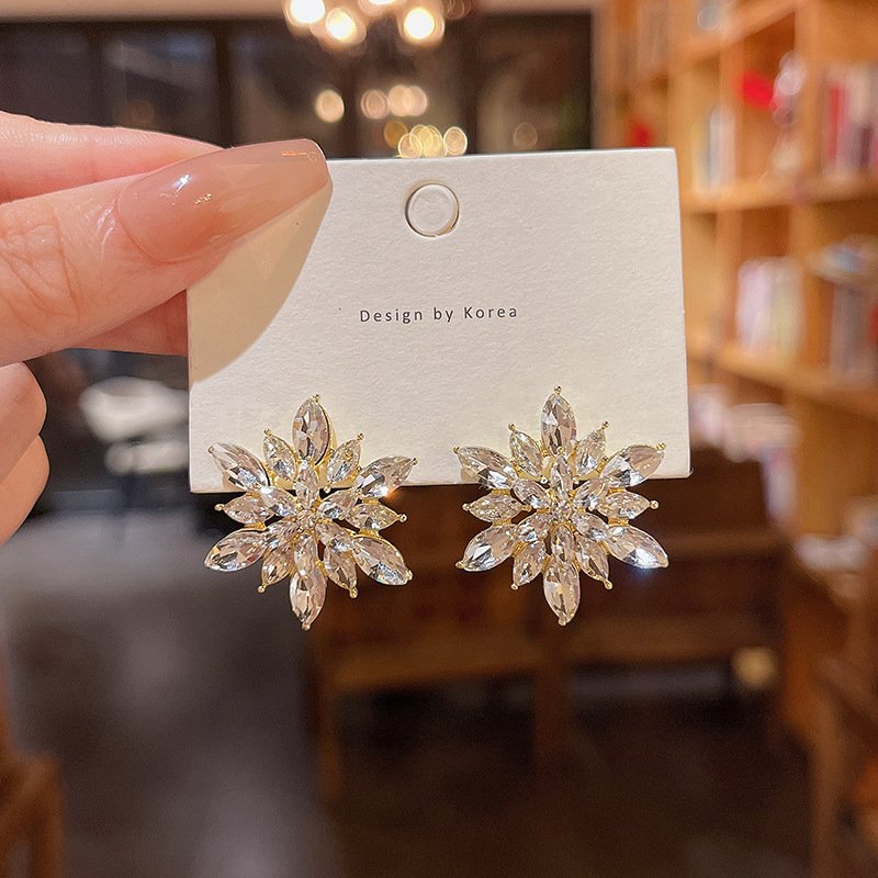 925 silver needle South Korea’s new super flash exquisite diamond snowflake earrings women’s ins tide exaggerated geometric earrings earrings
