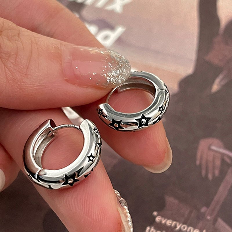 Yongcheng s925 sterling silver earrings niche design sense of high-end earrings American retro star earrings earrings autumn and winter
