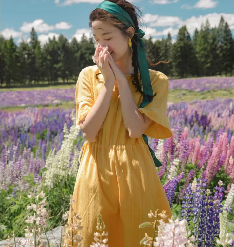 Yin M’s material is super good summer pure cotton round neck trumpet sleeve waist A pendulum art female dress female cut label
