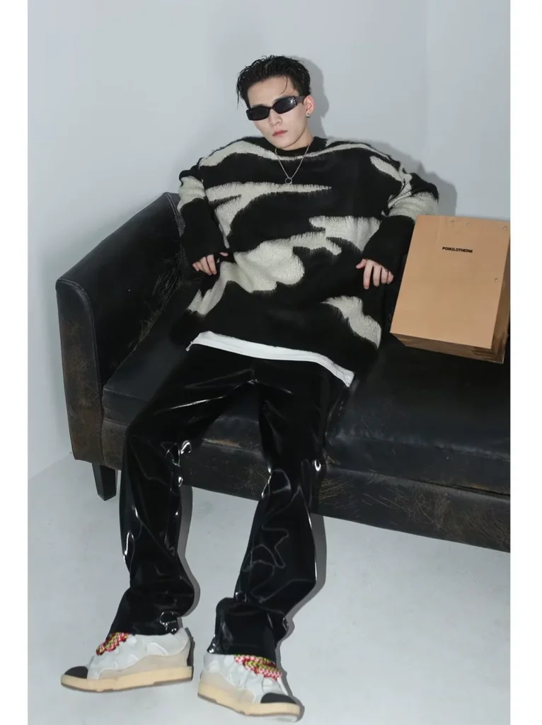 American high street vibe style black breasted jeans, men’s spring trendy brand loose straight-leg stacked bootcut pants
