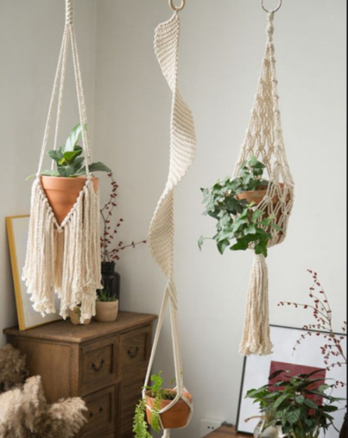 Ins woven tapestry flower basket Nordic style hand-woven wall hanging plant hanging spider orchid net pocket decoration bohemian