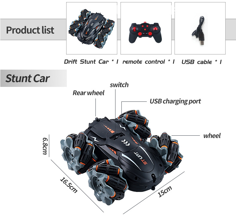 Be the first to review “Cross-border four-wheel drive remote control stunt car lateral movement double-sided driving light rotation drift car shaking sound explosion toys wholesale” Cancel reply