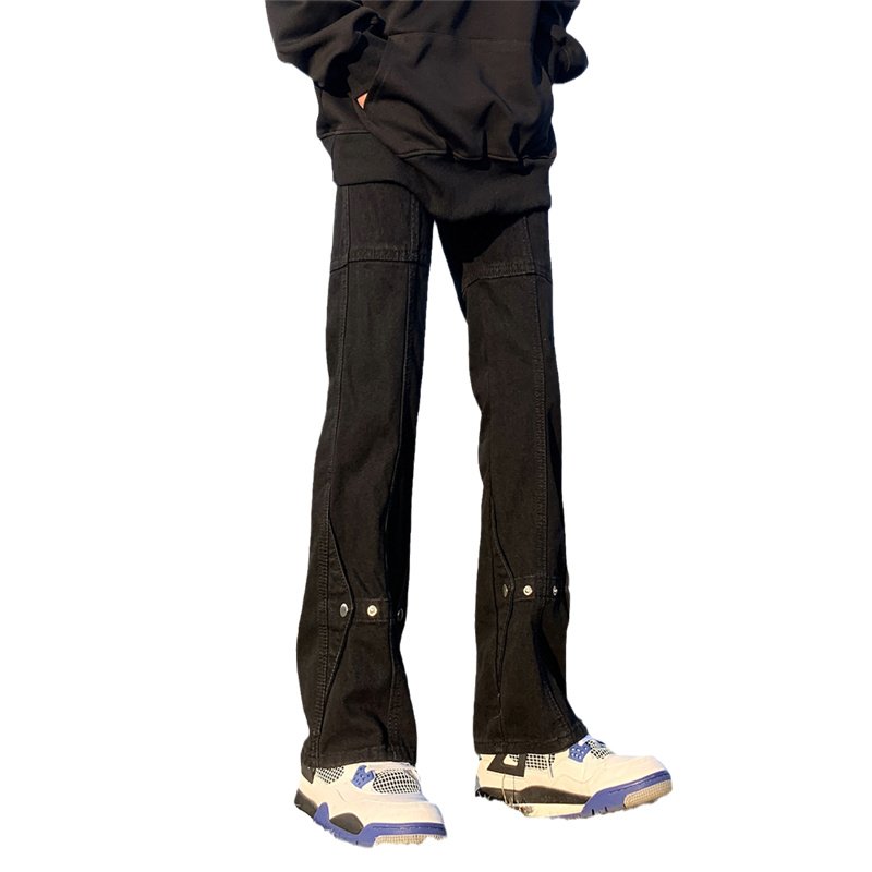 American high street vibe style black breasted jeans, men’s spring trendy brand loose straight-leg stacked bootcut pants