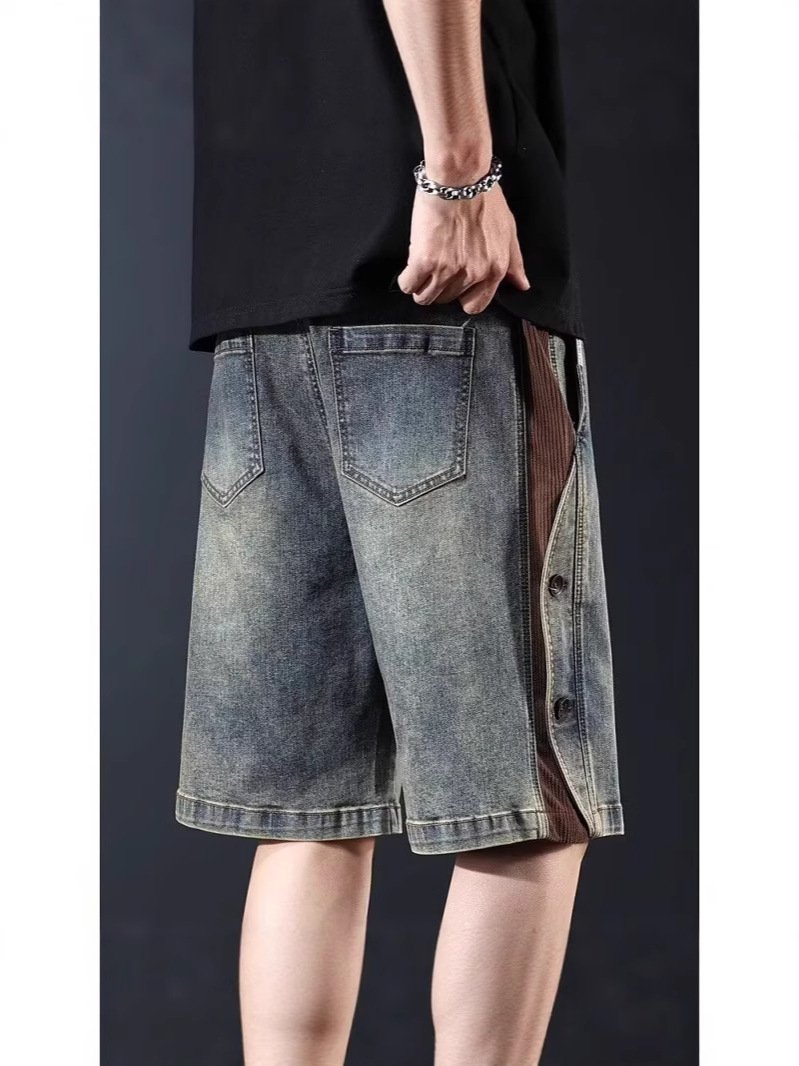 American trendy brand denim shorts, men’s summer loose plus-size overalls, five-point pants, handsome, slim straight, and over-wear breeches