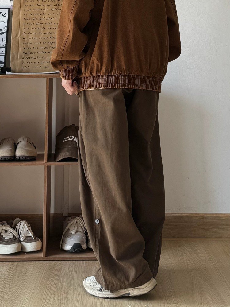 Japanese men’s retro cityboy loose cargo pants wide leg versatile elastic waist design casual long pants men