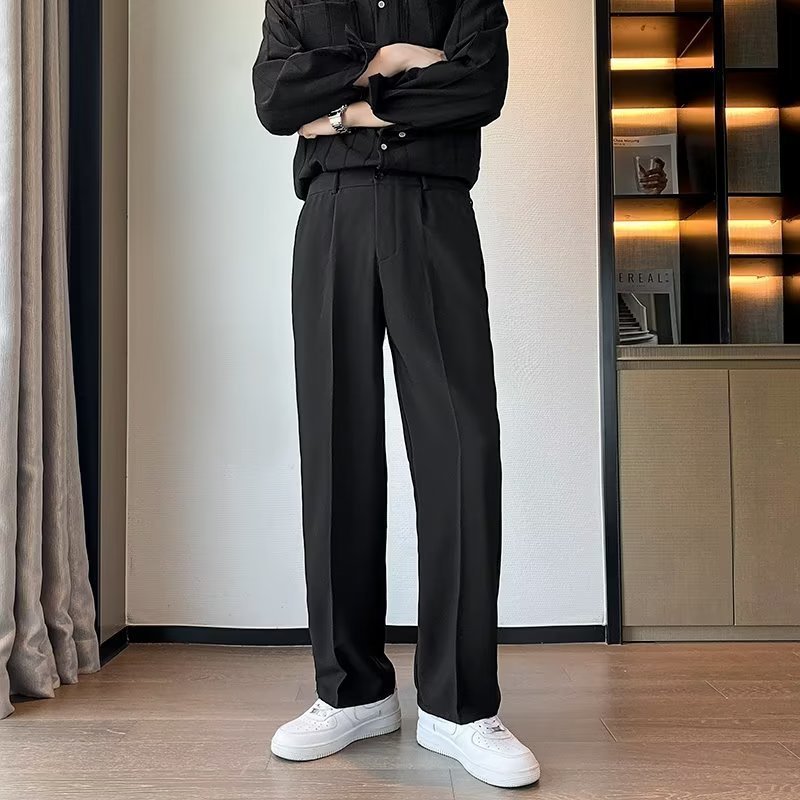 Large size draped ice silk straight leg trousers, men’s summer sports, loose mopping, quick-drying, thin casual trousers, handsome