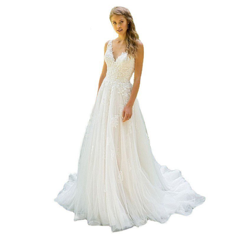 Foreign trade Amazon double shoulder lace wedding banquet dress new European and American brides large size thin trailing out yarn