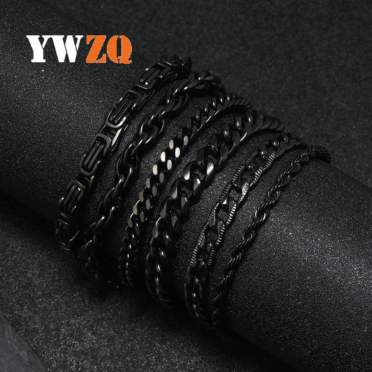 Hip Hop Trend Cuban Chain Titanium Steel Twist Chain Lobster Clasp Black Bracelet European and American Men’s Stainless Steel Bracelet Jewelry