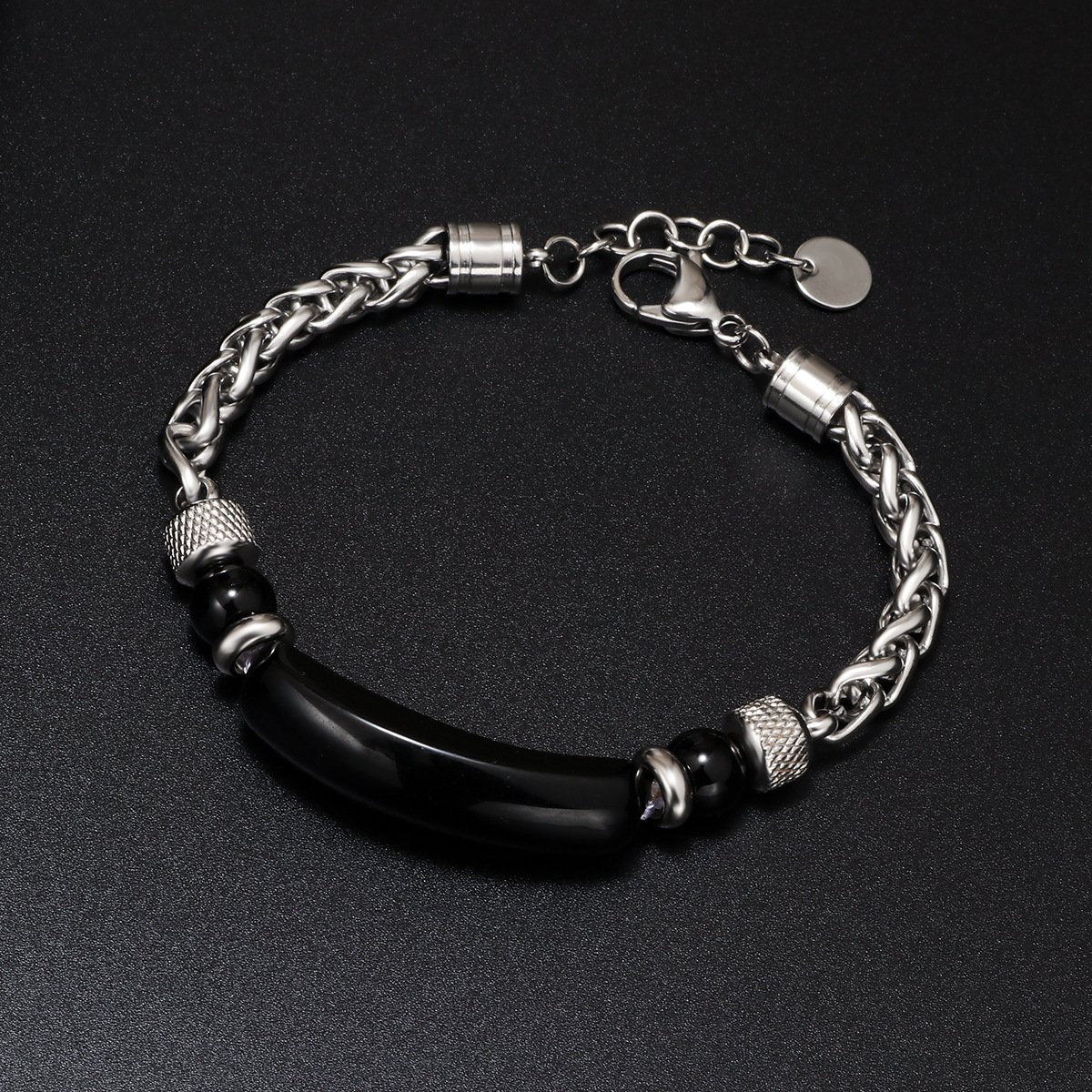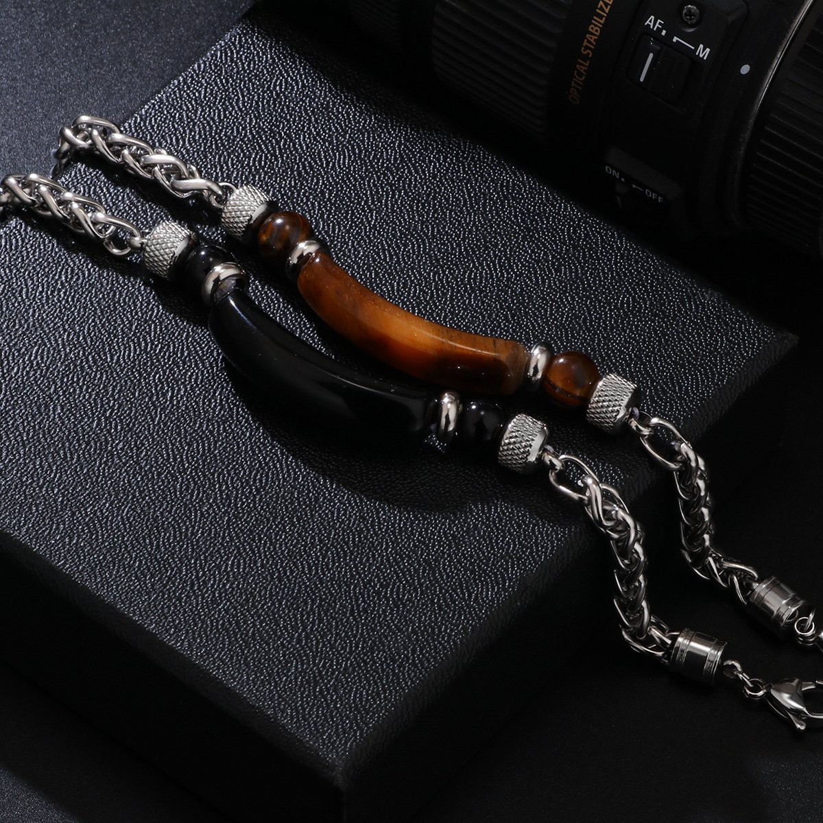 Natural Stone Bracelet Men’s Trendy Fashion Personality Retro Handsome Titanium Steel Chain Splicing Tiger’s Eye Men’s Bracelet