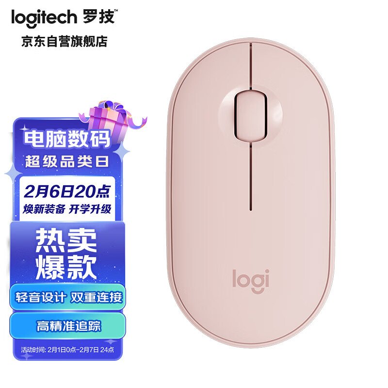 Logitech (Logitech) Pebble Pebble Mouse Wireless Bluetooth Mouse Office Mouse Light Sound Mouse Female Mouse Portable Mouse Symmetrical Mouse Rose Pink
