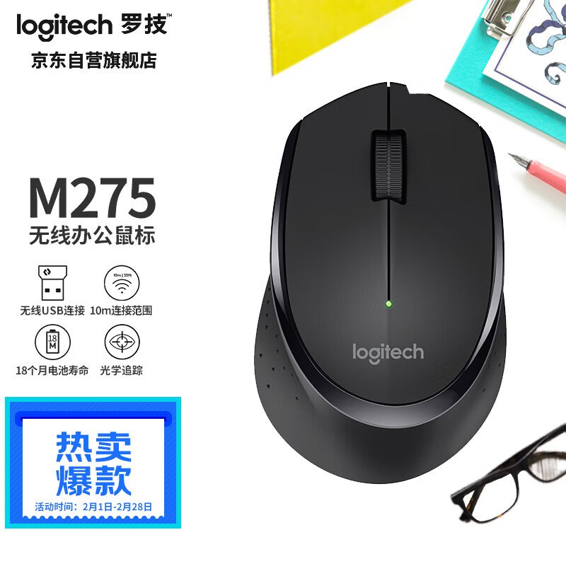 Logitech (Logitech) M275 mouse wireless mouse office mouse right hand mouse black with wireless 2.4G receiver
