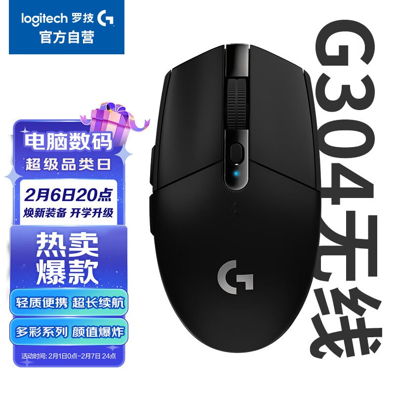 Logitech (G) G304 LIGHTSPEED Wireless Mouse Gaming Mouse Lightweight Portable Mouse Macro Jedi Survival FPS League of Legends Chicken Birthday Gift Black