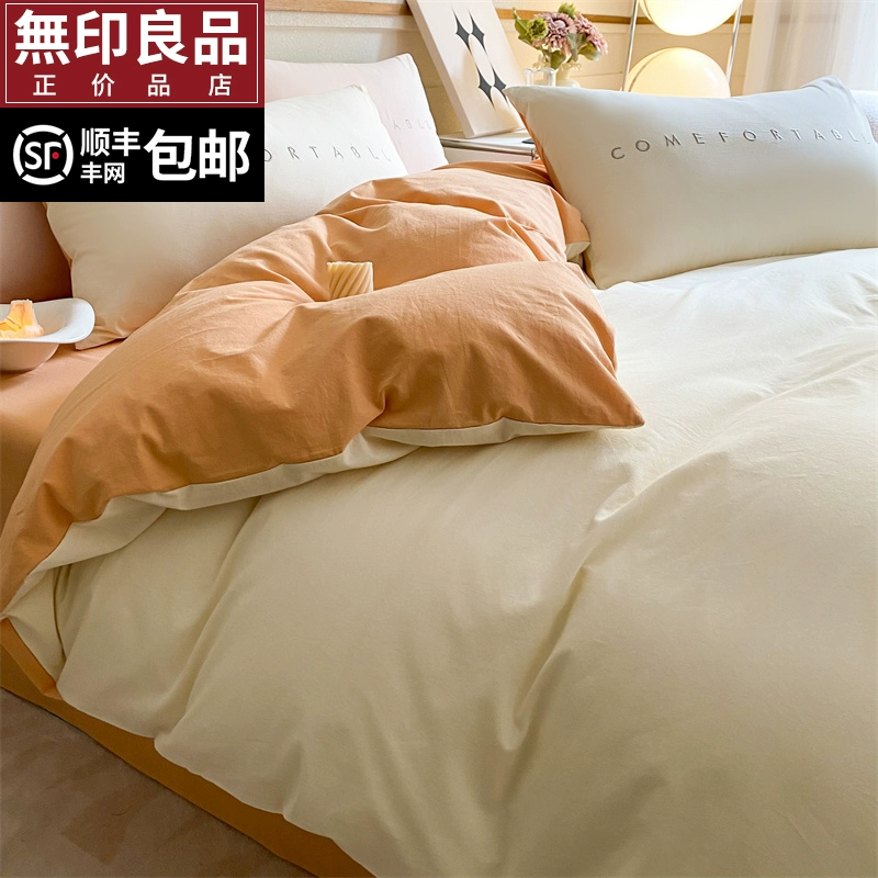 MUJI Japanese-style good washed cotton solid color four-piece set simple cotton bedding fitted sheet 1.5/1.8M