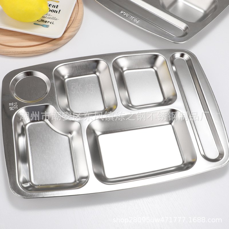 304 stainless steel dinner plate with five grids and six grids students’ fast food plate deepens the grid plate canteen rice plate factory direct sale