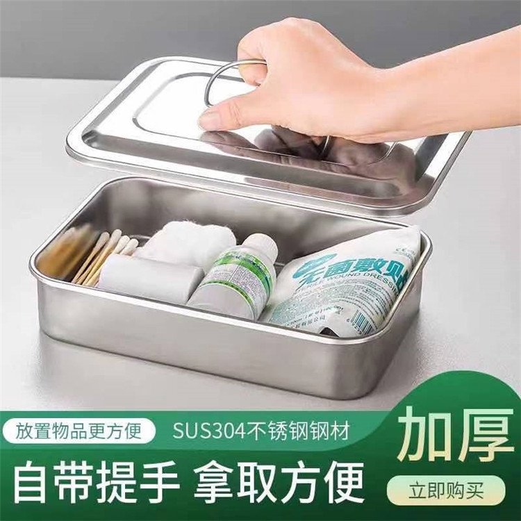 304 stainless steel disinfection box with cover square plate cover disinfection plate dressing change instrument plate with hole surgical tray instrument box