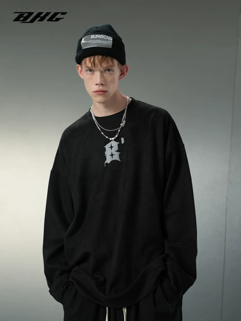 Suede worn-out round neck sweater