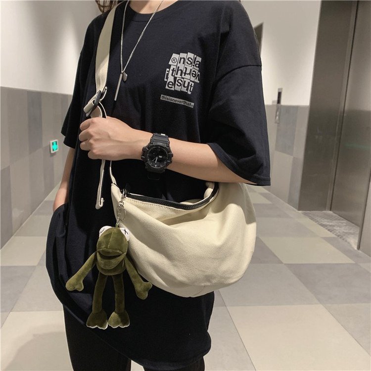 Trend fashion casual commuter ladies shoulder bag simple solid color canvas men’s bag Japanese ins tide brand Messenger bag