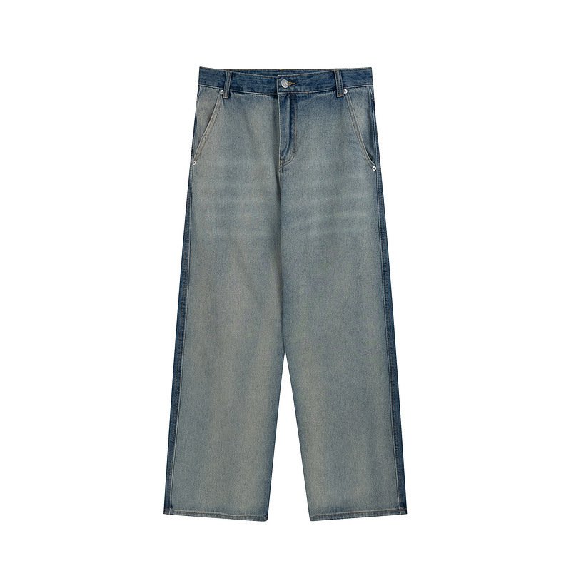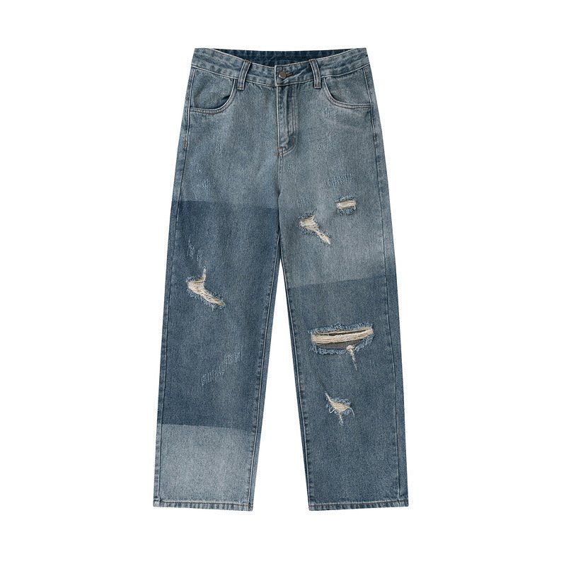 Vintage color matching ripped straight jeans