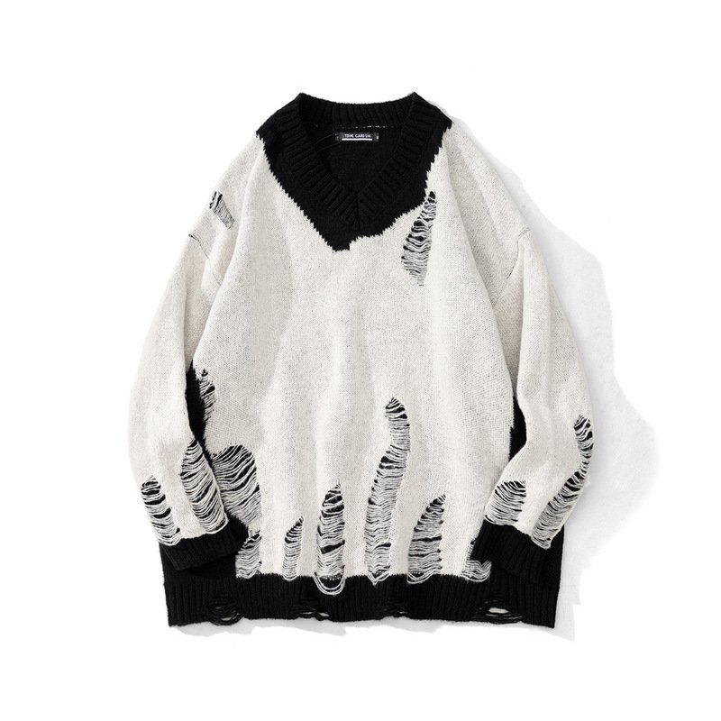 Vintage color-blocking irregular hole sweater