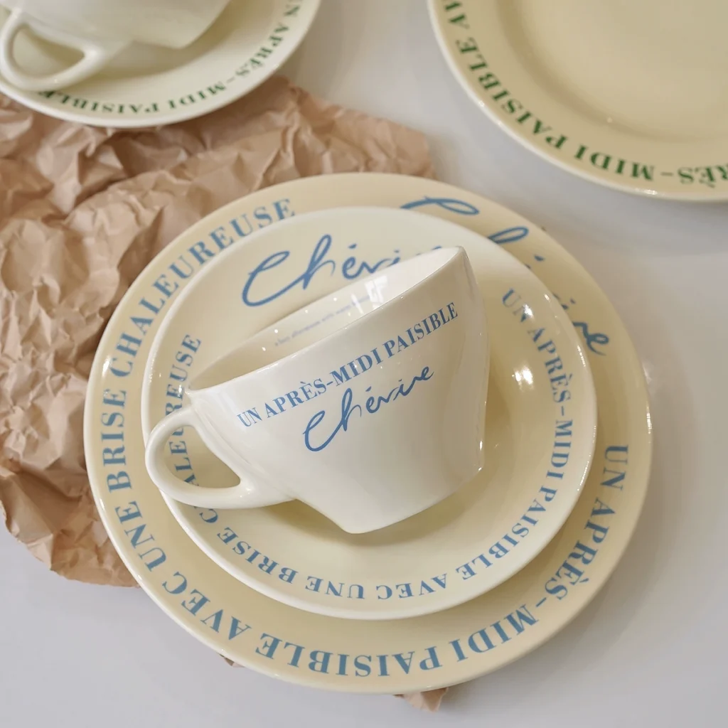 Vintage French cream coffee cup and plate