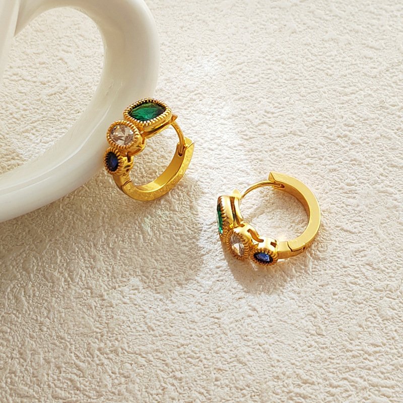 Color contrast zircon geometric earrings