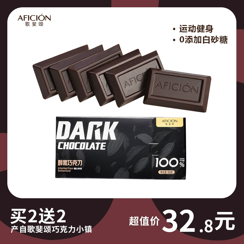 Gefei Song 100% dark chocolate pure cocoa butter fitness no added sucrose super bitter snack baking net red 90g