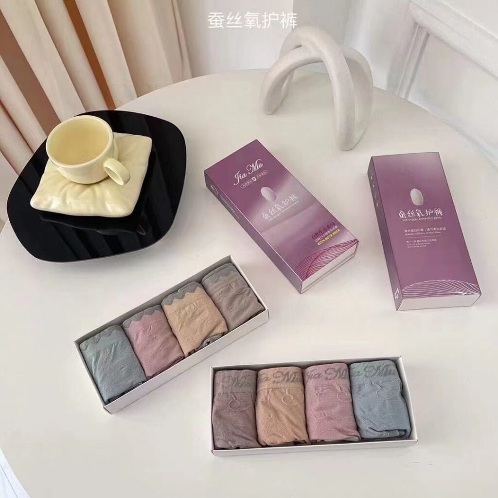Ginger silkworm oxygen pants live burst boxed ginger panties mid-waist cotton lace trim plus size seamless ladies briefs