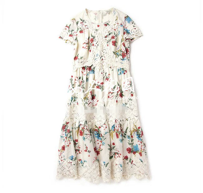 Give back at a loss~Island Home~Sen Department Vintage Pastoral Print Lace Small Size Eden Floral Cotton Dress