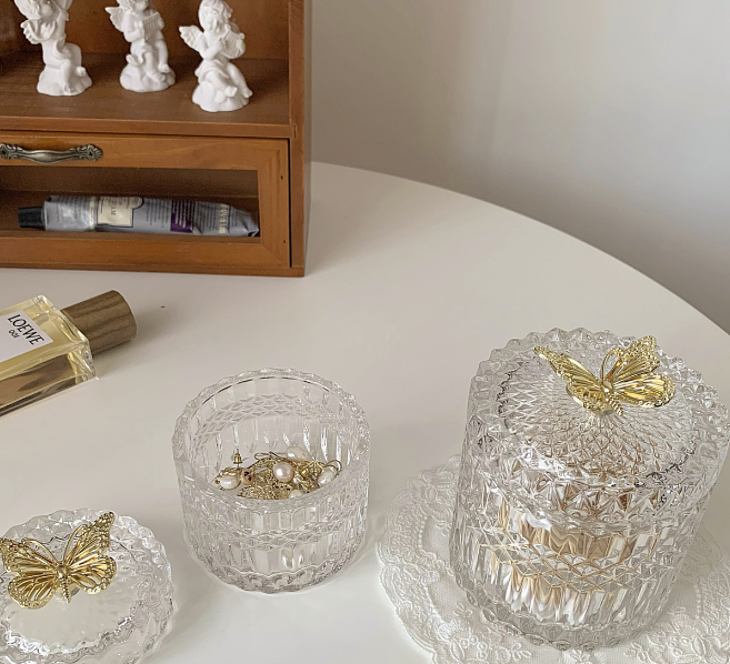 ins wind transparent glass golden butterfly jar jewelry jewelry cotton swab storage box embossed European-style storage storage