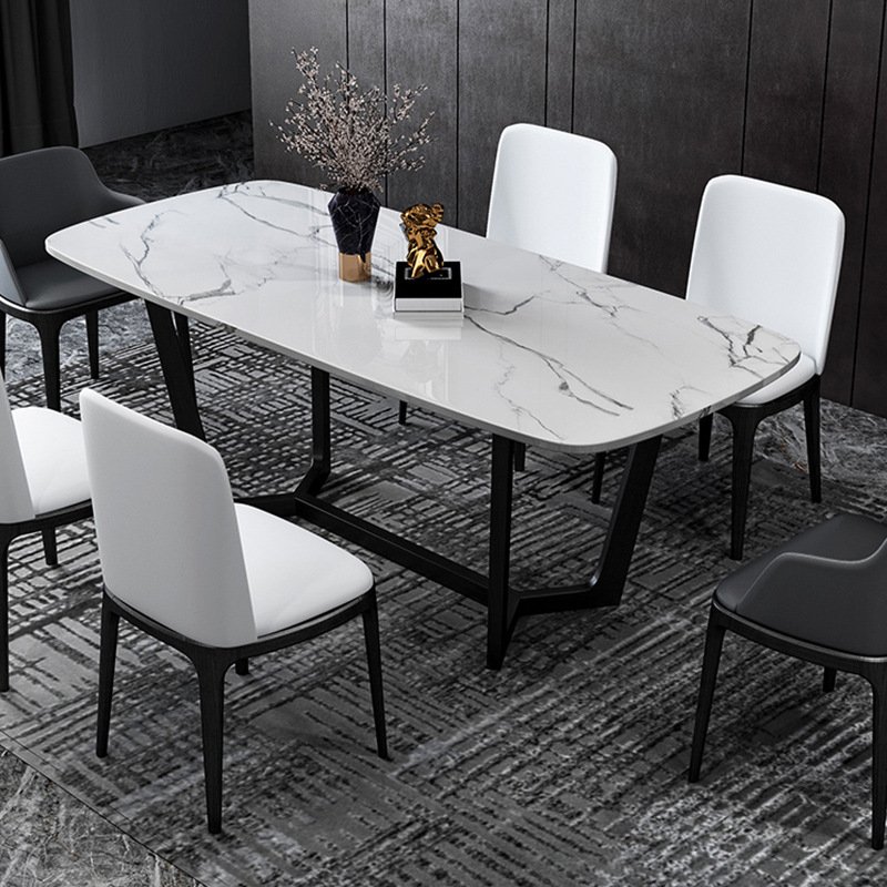 Italian-style slate dining table and chair combination light luxury modern minimalist small apartment 6-person household rectangular slate dining table and chairs