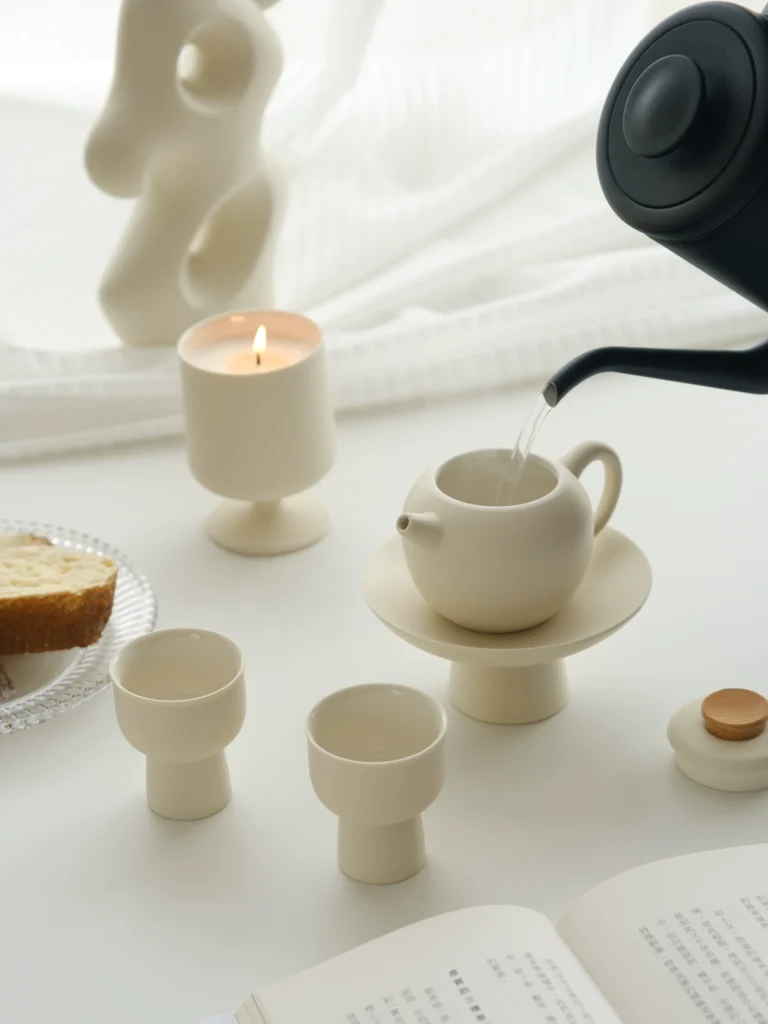 Japanese cream simple high teapot tea set