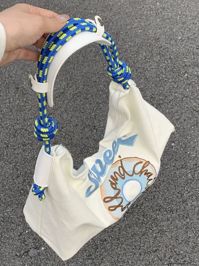Japanese cotton and linen women’s bag new simple printed handbag lunch storage bag girl work shoulder bag