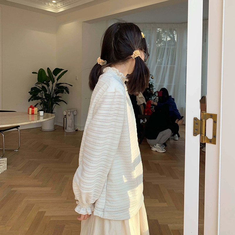Lace lace collar pleated German velvet warm bottoming shirt fleece loose girly Japanese spring and autumn long-sleeved top
