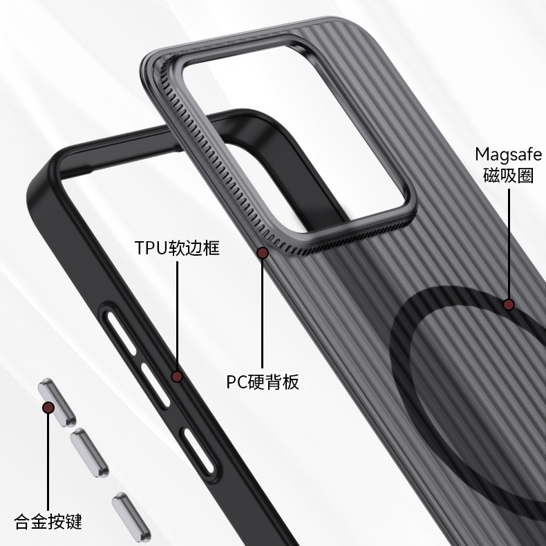 The simple shield grating is suitable for Xiaomi Mi 15 mobile phone case magnetic charging 14pro matte ultra premium sense 13 protective case