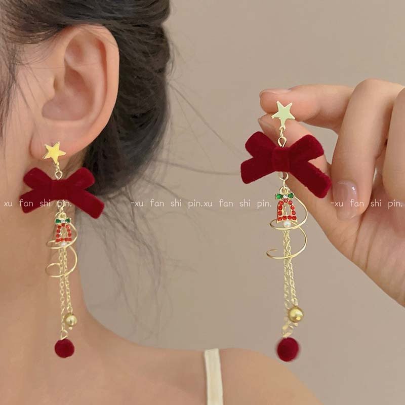 2025 New Trend Christmas Tree Earrings: Niche Design Bow Temperament Stud Earrings High-end Earrings