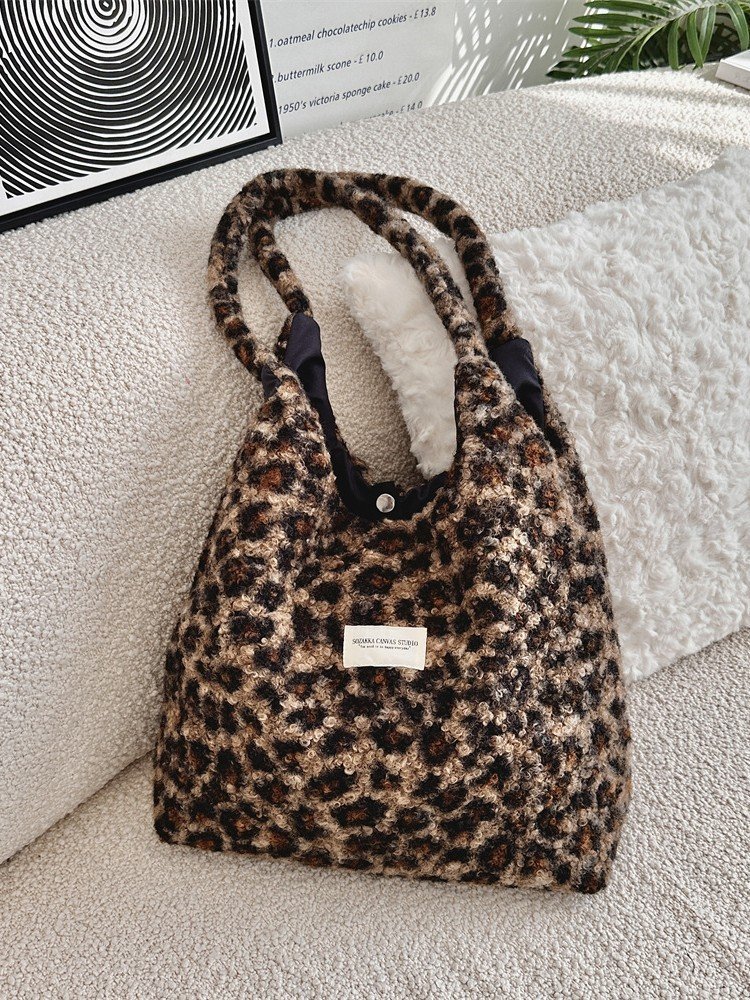 49291 Fall/Winter New Korean Ins Style Fashion Imitation Lamb Plush Large Capacity Shoulder Bag Leopard Tote Bag