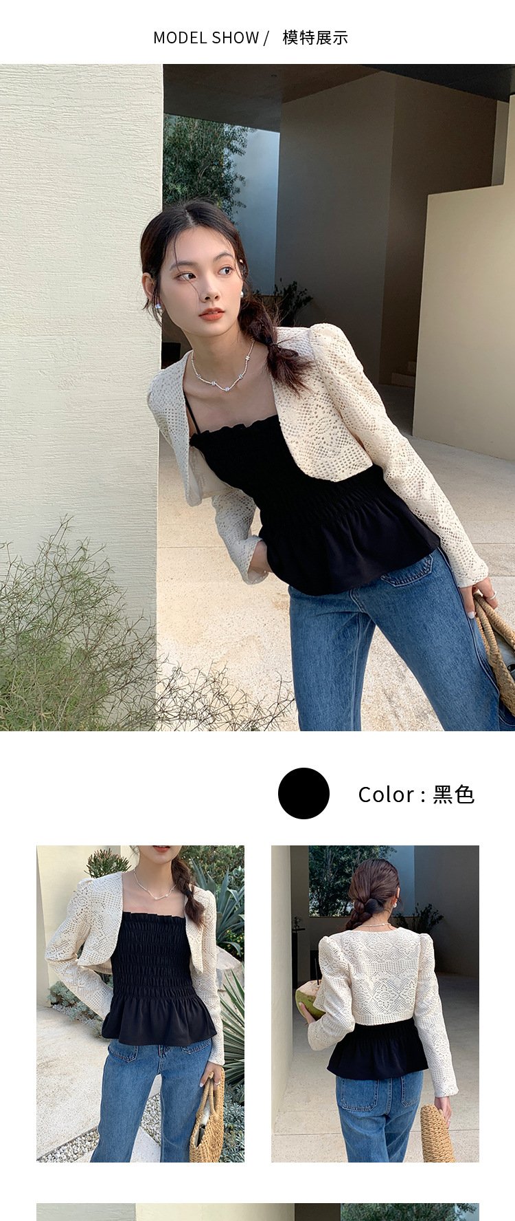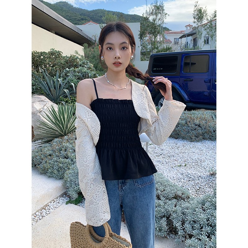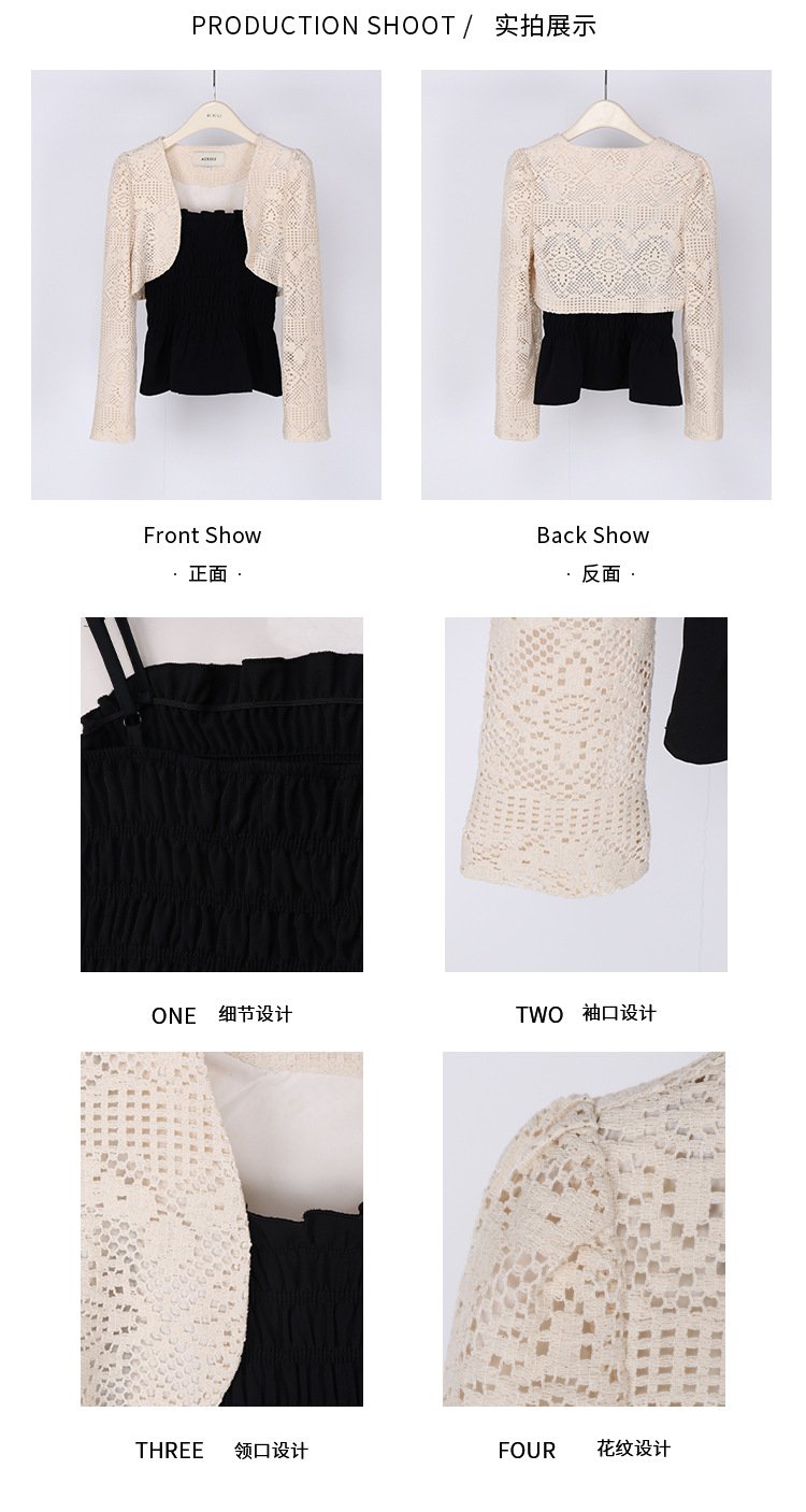 Be the first to review “Aixili 2023 spring new lace long-sleeved shawl with small straps and ruffles two-piece suit female 8111” Cancel reply