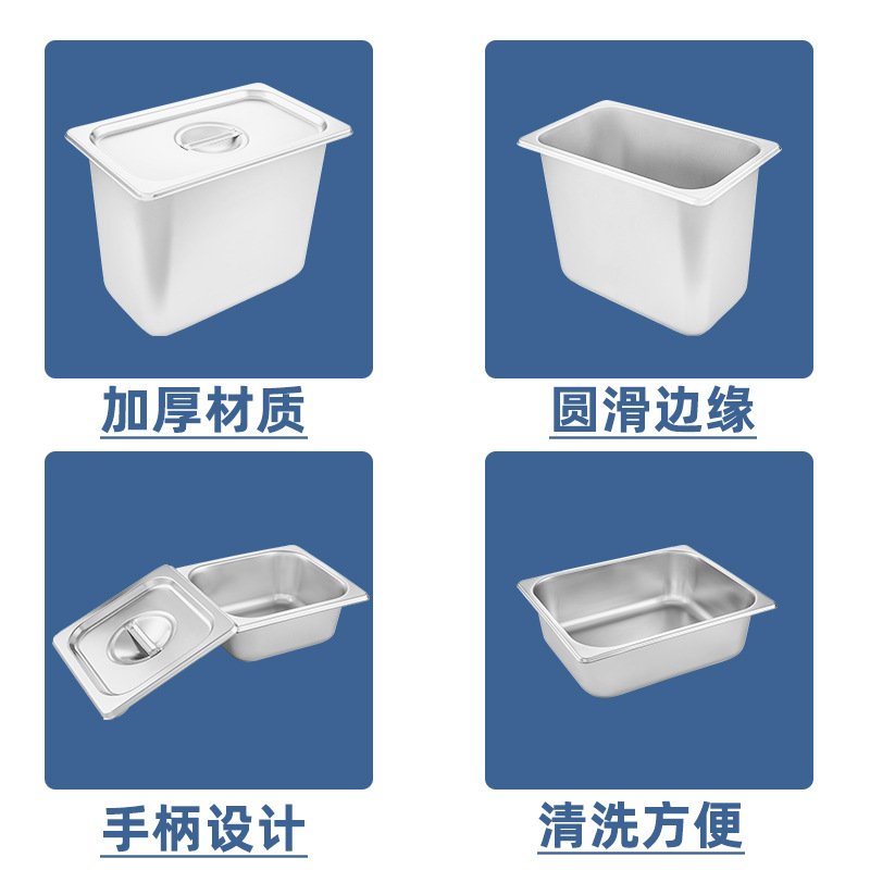 American-style thickened stainless steel serving basins commercial multi-standard large-capacity food vegetable basin buffet insulation table vegetable basin