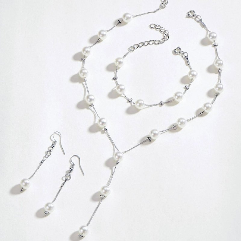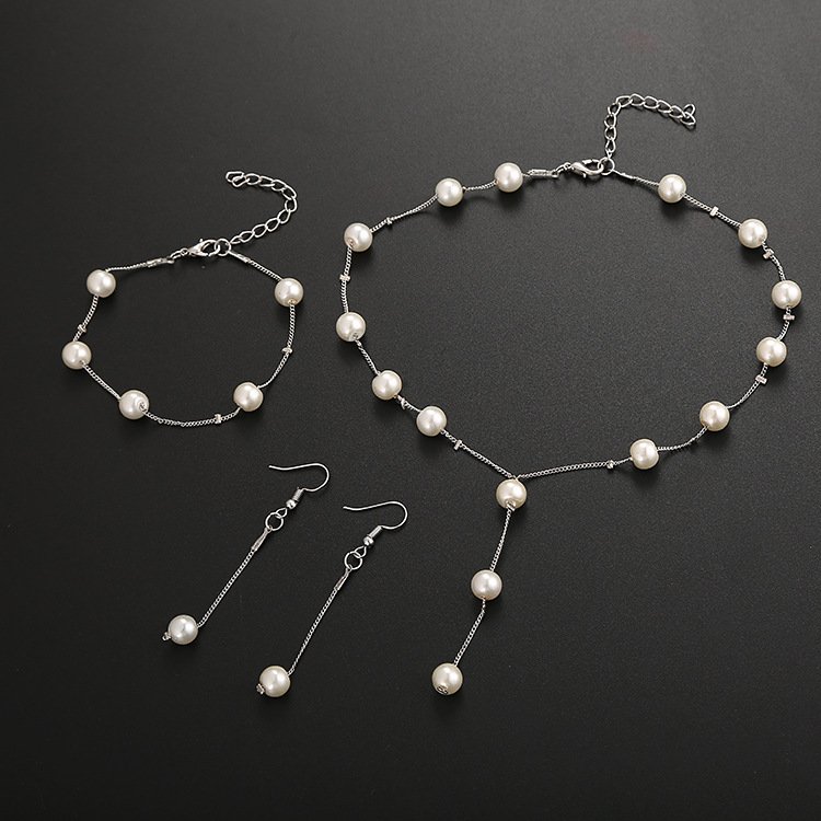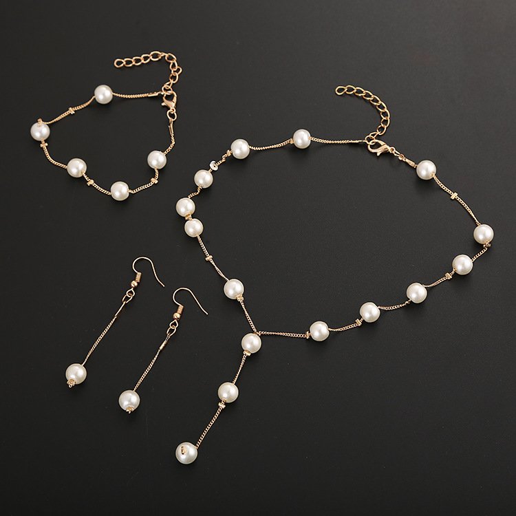 Boutique Korean version fashion sweet OL elegant pearl simple temperament necklace earrings bracelet set