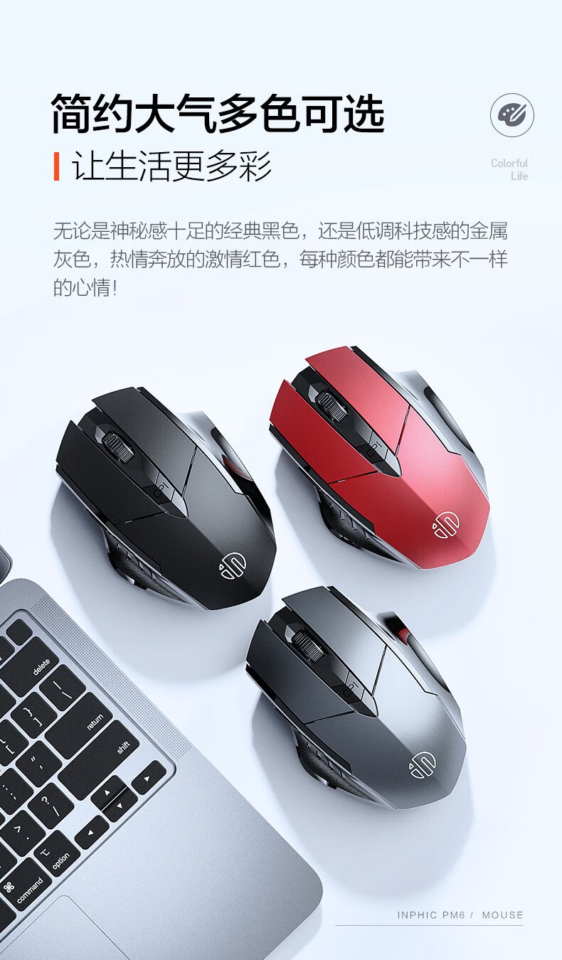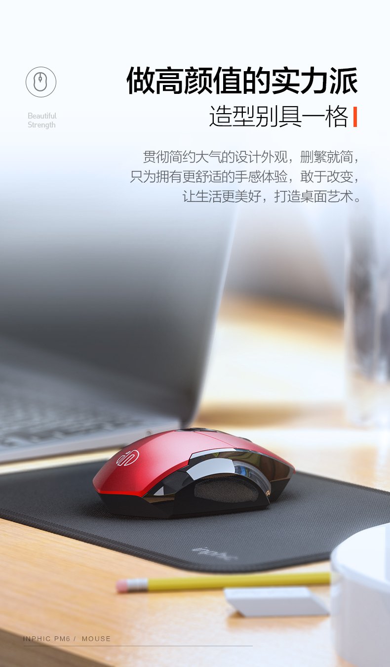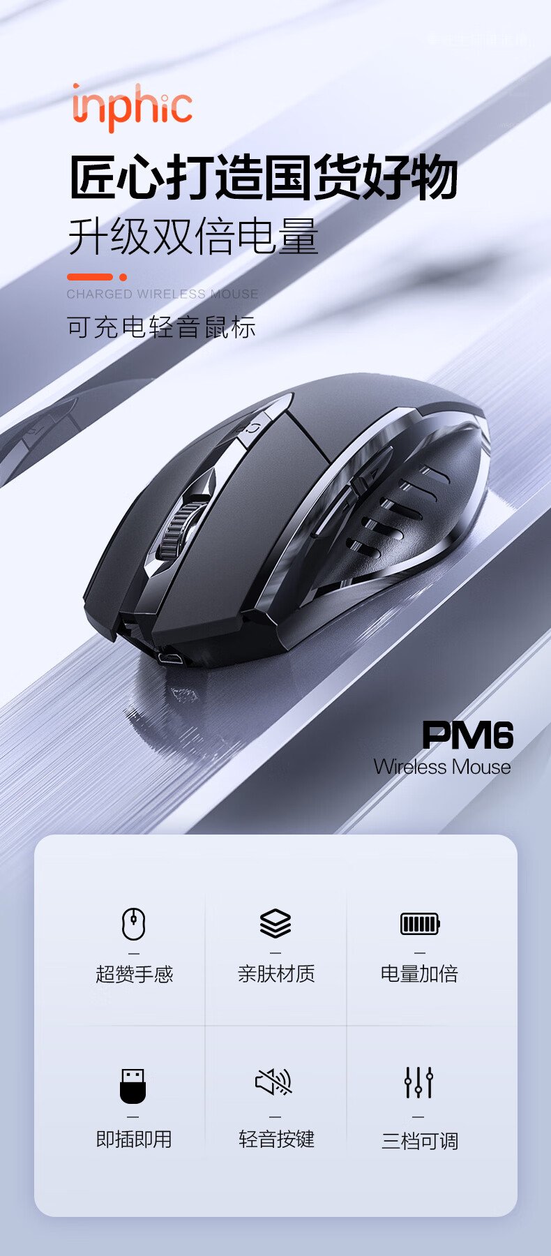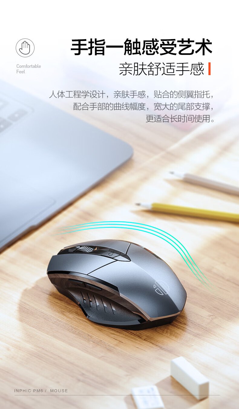 British Fick (INPHIC) PM6 wireless mouse rechargeable light sound mouse wireless gaming mouse computer desktop notebook 2.4G universal portable black