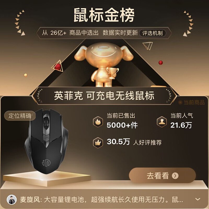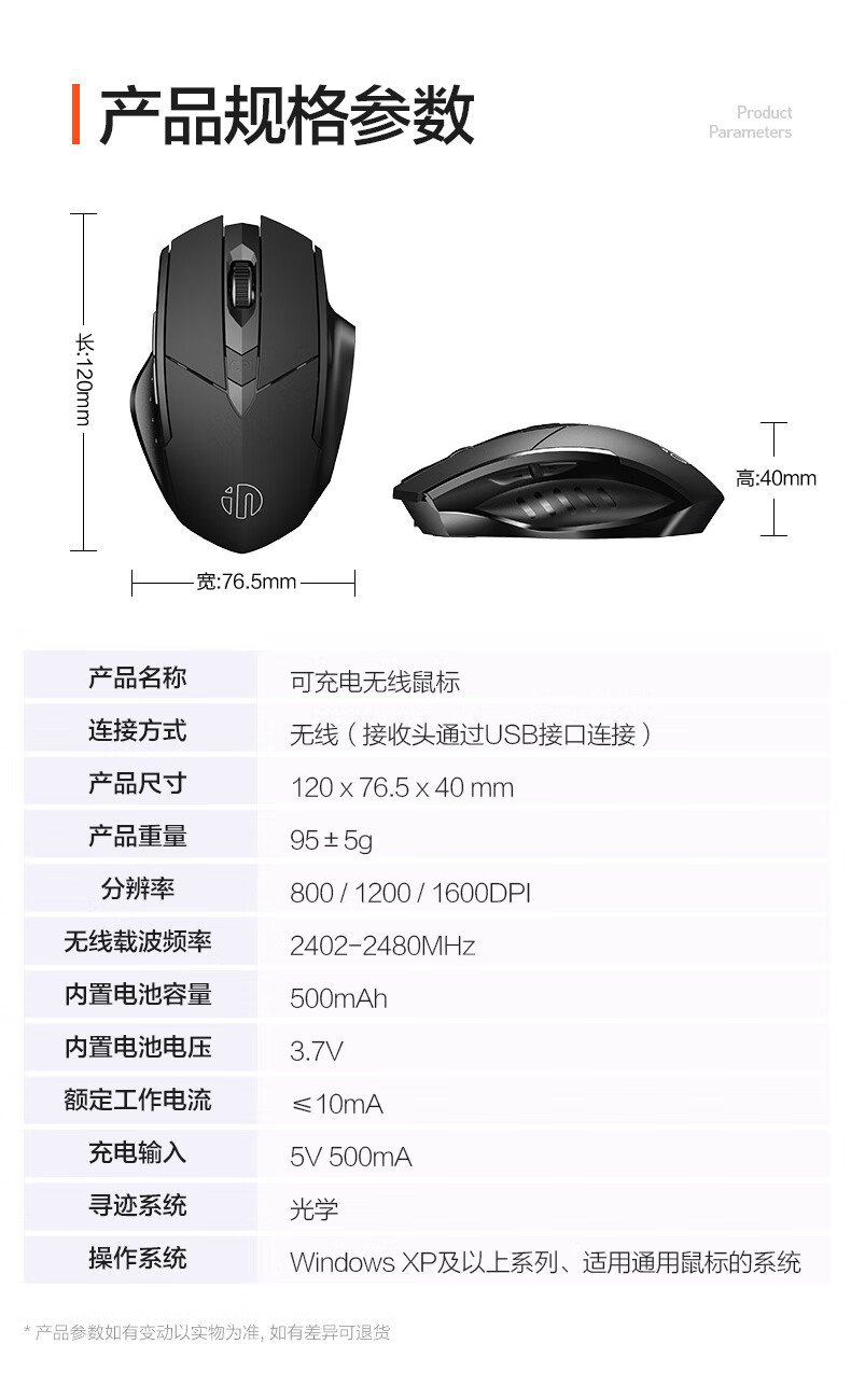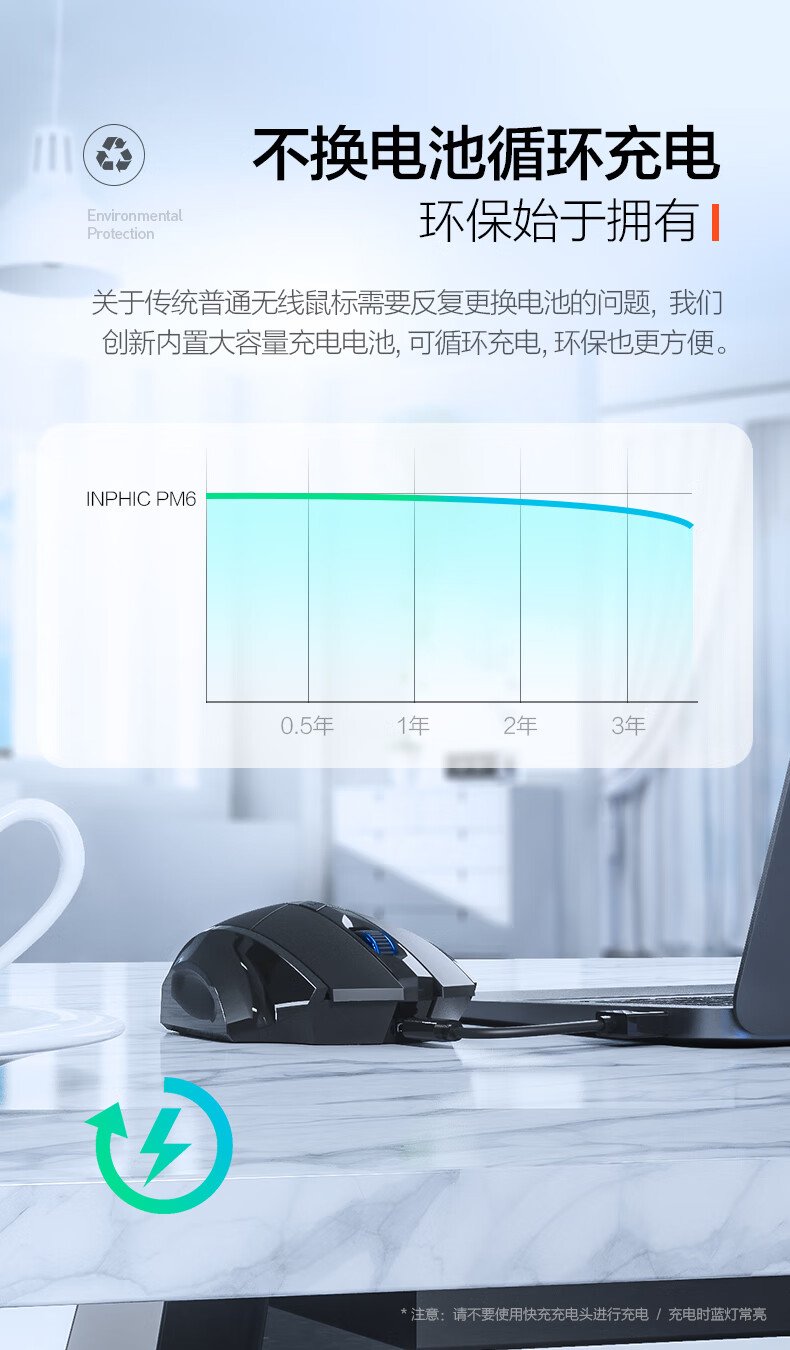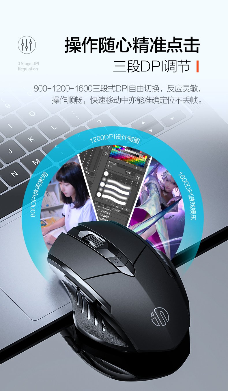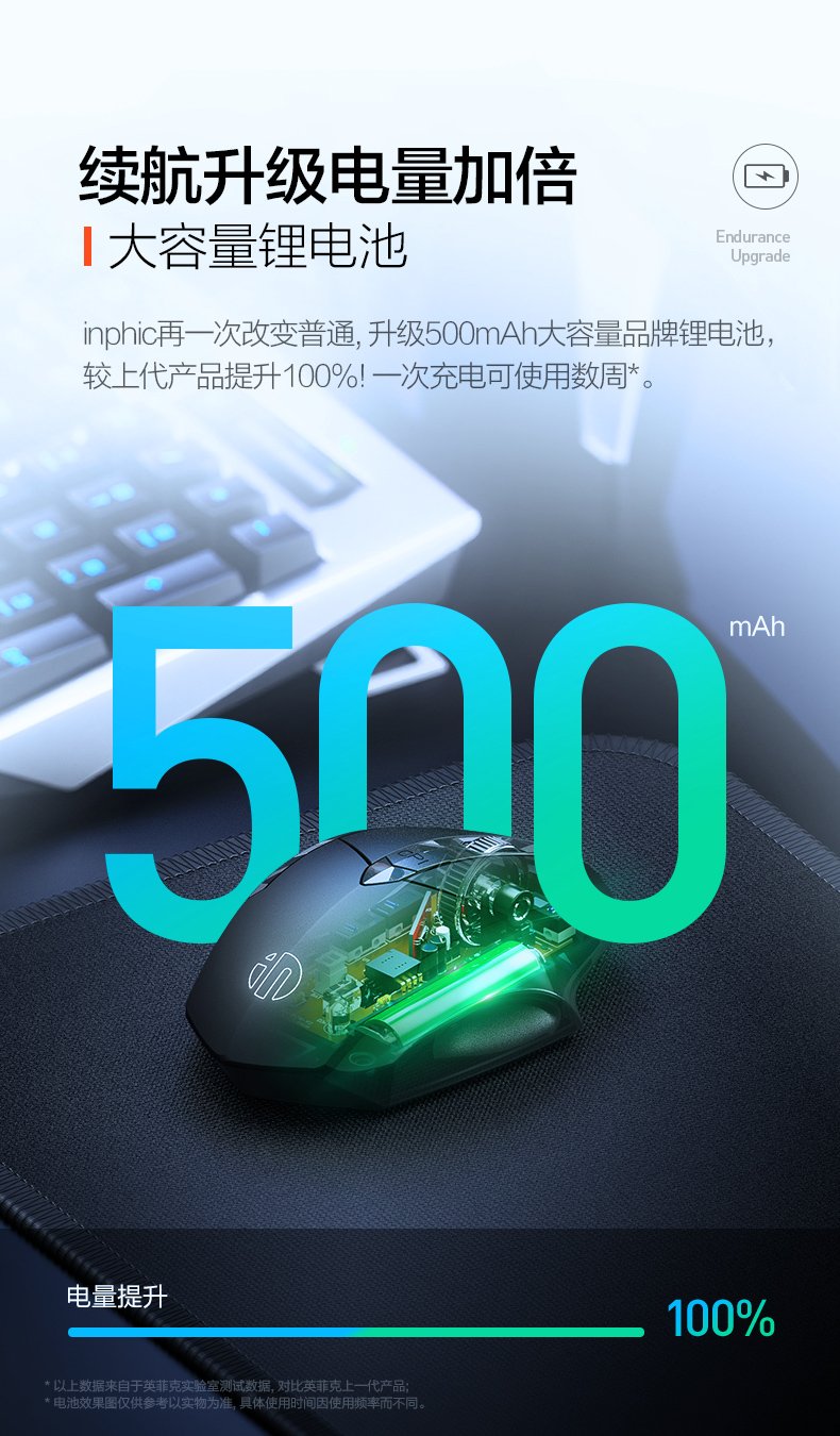 British Fick (INPHIC) PM6 wireless mouse rechargeable light sound mouse wireless gaming mouse computer desktop notebook 2.4G universal portable black